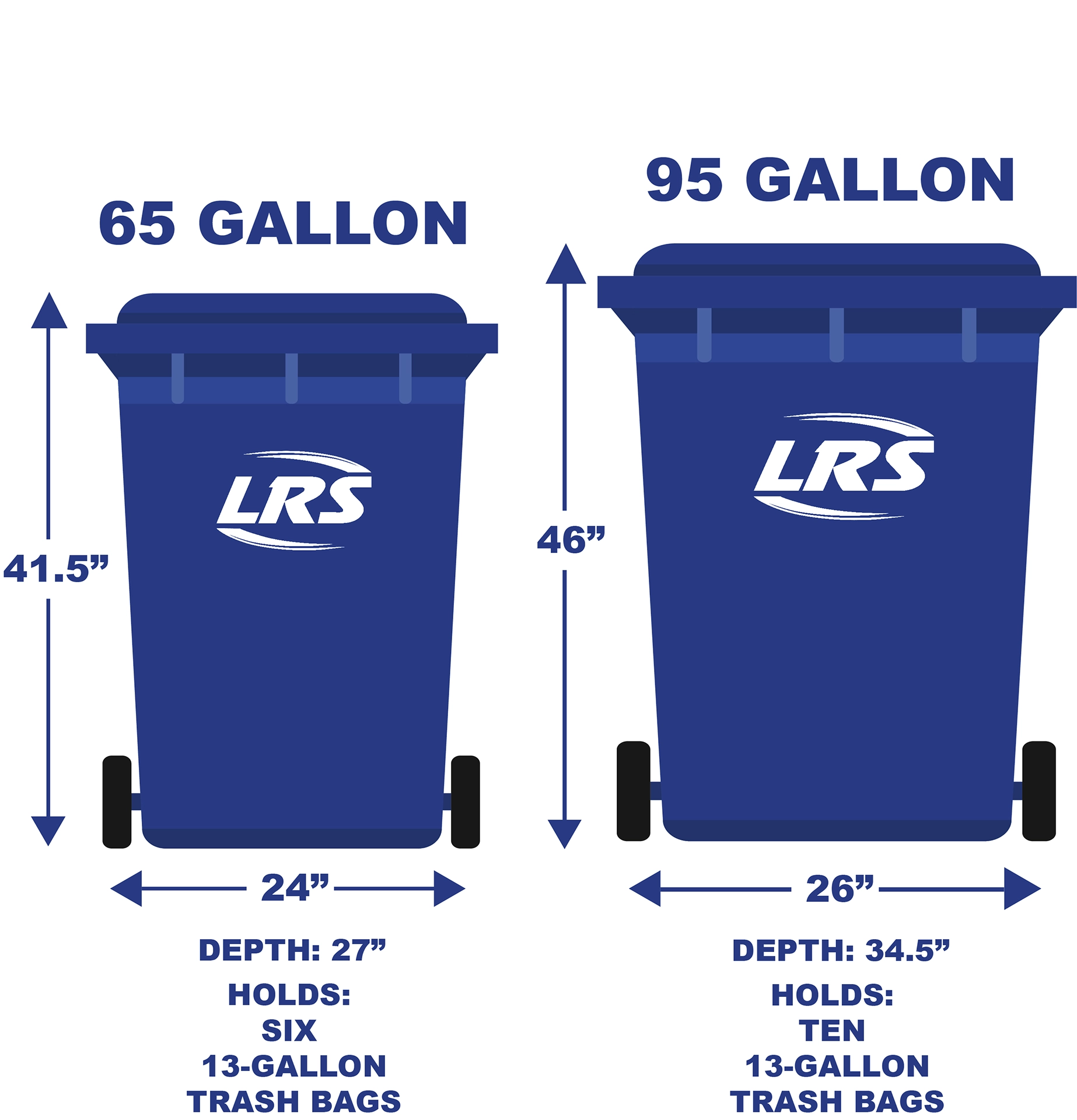 All garbage will be collected starting at 7AM on the service day. Garbage is collected weekly on the Friday service day. Service times are subject to change. LRS provides wheeled carts with a flip-top lid and handlebar to throw your garbage in. All LRS garbage carts are 95-gallon in size. Residents may request an additional garbage cart or decrease their size options by submitting a request or contacting LRS customer service. See service options below: