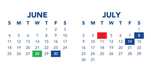 July 4th: Holiday (Friday July 7th service will be delayed one day)