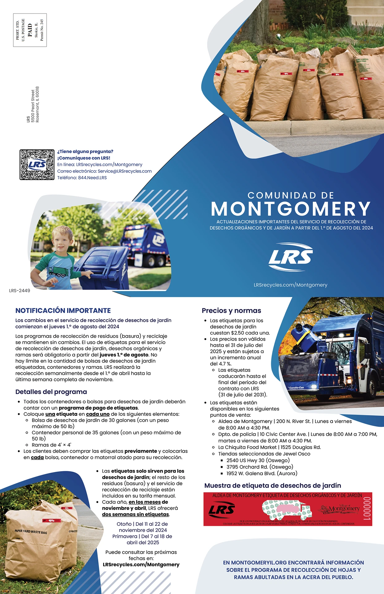 EFFECTIVE AUGUST 1, 2024, ONE RED VILLAGE OF MONTGOMERY YARD WASTE & ORGANIC STICKER WILL BE REQUIRED FOR EACH BAG, CONTAINER OR BUNDLE.